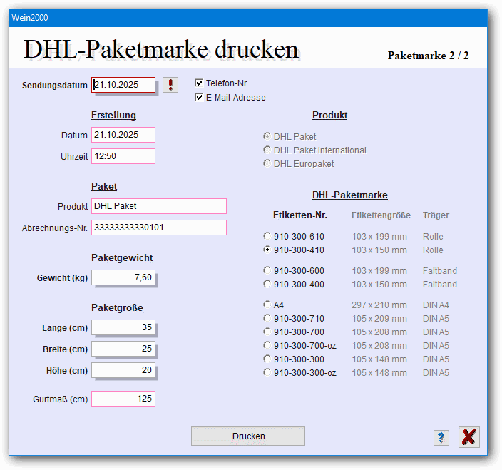 Sie direkt mit Wein2000 DHL-Paketmarken