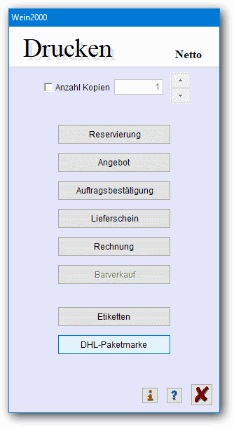 Sie können pro Beleg (Rechnung, Lieferschein, Auftragsbestätigung, etc.) eine DHL-Paketmarke für ein Paket oder aber auch mehrere DHL-Paketmarken für mehrere Pakete drucken